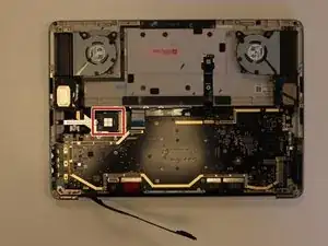 После удаления батареи устройства найдите SSD рядом с материнской платой.