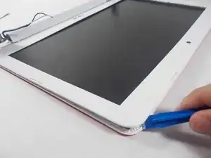С помощью синего монтажного инструмента подденьте рамку лицевой панели экрана.