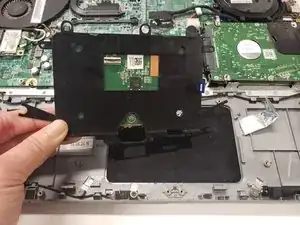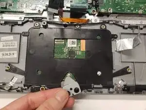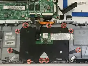 Удалите десять винтов Phillips #0, крепящих тачпад к основанию.