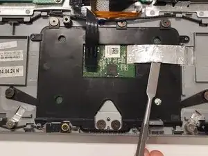 Используйте лопатку, чтобы удалить алюминиевую клеющую ленту с тачпада.