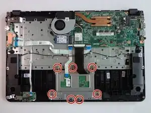Выверните семь винтов Phillips 6 мм, расположенных вокруг тачпада.