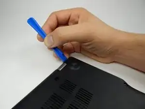 Вставьте пластиковый инструмент для вскрытия в щель рядом с петлями и подденьте вверх, чтобы приподнять заднюю панель.