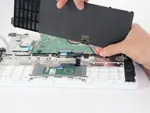 Сдвиньте сборку тачпада вверх в сторону материнской платы, пока её не удастся поднять и вынуть.