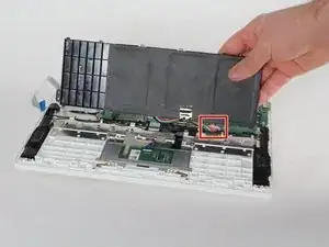 Отключите чёрный ленточный кабель от сборки тачпада.