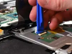 Используйте пластиковую лопатку, чтобы отжать небольшой пластиковый зажим в разъёме.