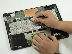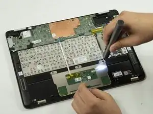 Используйте отвертку Phillips #000 для удаления пяти винтов длиной 2 мм с задней стороны тачпада, затем аккуратно удалите тачпад и отложите его в сторону.