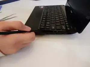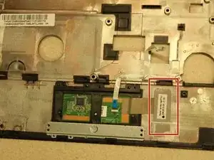 Используйте лопатку, чтобы открыть основание тачпада, начиная с угла, показанного на изображении.