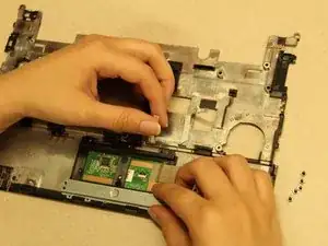 Вы услышите щелчки. Хотя это нормально, будьте аккуратны при отсоединении основания тачпада от остальной части ноутбука.