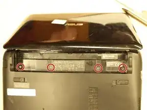 После того как все четыре винта будут удалены, переверните ноутбук клавиатурой вверх.