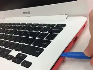 Отделите пластиковый корпус от клавиатуры по шву с помощью пластикового монтажного инструмента.