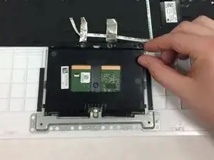 Снимите клавиатуру и переверните её лицевой стороной вниз. Вы должны увидеть тыльную сторону тачпада.