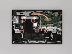 Удалите пять винтов длиной 3,5 мм, крепящих аккумулятор, крестовой отверткой #1.