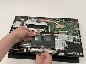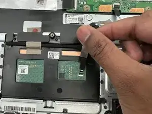 Осторожно потяните ленточный кабель назад, пока он не отсоединится от тачпада.
