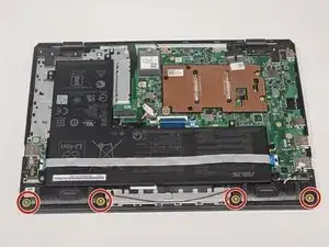 Начните с удаления десяти винтов 7 мм на нижней части ноутбука с помощью отвертки JIS #00.