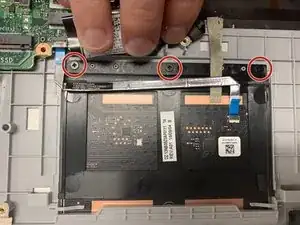 Используйте крестовую отвертку Phillips #0, чтобы выкрутить три винта 3,0 мм, соединяющие тачпад с корпусом.