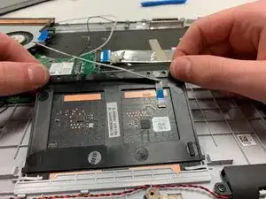Этот ремонт потребуется, если ноутбук перестал реагировать на сенсорное управление, отсутствуют клики или одна из кнопок мыши не работает. При отсоединении проводов, соединяющих тачпад с материнской платой, используйте пластиковый инструмент для разъёма, чтобы избежать повреждений.