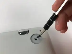 Используйте крестовую отвертку Phillips #0, чтобы выкрутить два винта 4 мм, которые находятся под резиновыми накладками.