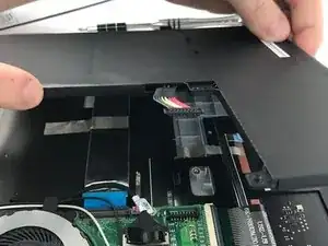 Отведите в сторону крупную ленту передачи данных возле тачпада руками.