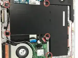 Используйте крестовую отвертку Phillips #0, чтобы выкрутить пять винтов 4 мм вокруг батареи.