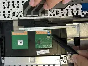 Используйте лопатку, чтобы поднять фиксирующий язычок на шлейфе тачпада ZIF разъеме.