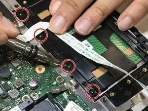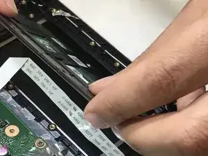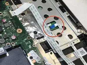 Отключите маленький синий разъём TP (тачпад), обозначенный как data bus.