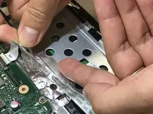 Поднимите металлический кронштейн и отведите его от ноутбука.