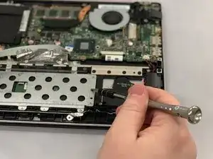Удалите четыре винта длиной 5 мм с тачпада с помощью отвертки Phillips #00.