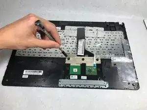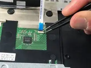 Отсоедините белый шлейф на обратной стороне тачпада.