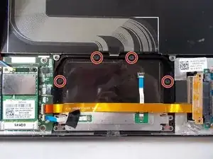 Используя отвертку Phillips #0, удалите четыре винта диаметром 2 мм, которыми тачпад прикреплен к устройству.