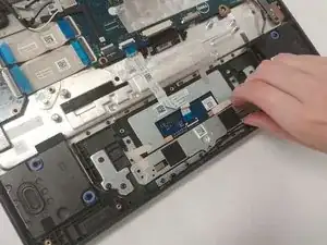 Следующий шаг — отключить шлейф, соединяющийся с тачпадом.