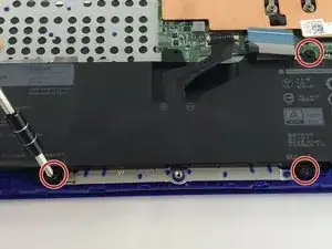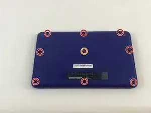 Поместите ноутбук вверх дном, чтобы увидеть первый набор винтов на нижней крышке. С помощью битой отвертки J1 открутите восемь (8) винтов размером 60 мм.