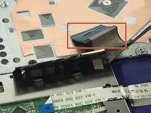 С помощью пинцета отключите кабель тачпада.