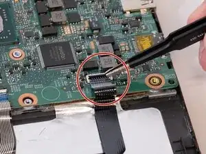После того как тачпад будет снят, отсоедините другой конец кабеля M8 так же, как раньше, и сохраните его для установки замены.