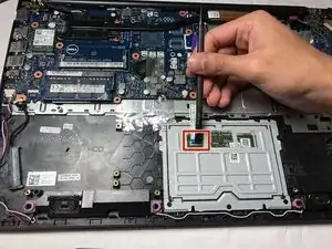 Отогните металлическую ленту, чтобы открыть доступ к тачпаду.