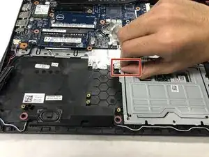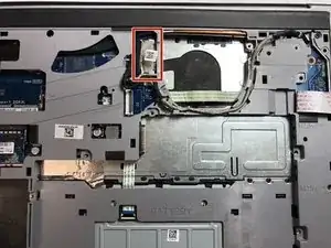 После отключения вентилятора от материнской платы вы можете извлечь вентилятор из посадочного места. Ваш ноутбук теперь должен выглядеть аналогично изображению в этом шаге.