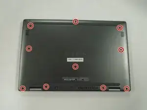 Используйте крестовую отвертку Phillips #0, чтобы выкрутить десять крепёжных винтов 8 мм, удерживающих нижнюю панель.