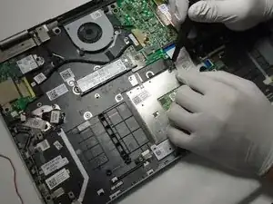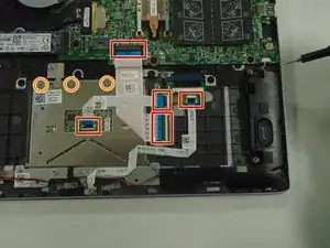 Один винт 2,2 мм скрыт под кабелями в правом верхнем углу тачпада.