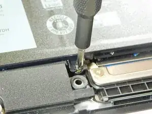 В официальном руководстве по обслуживанию Dell не упоминается пятый винт, расположенный у среднего края аккумулятора возле тачпада.