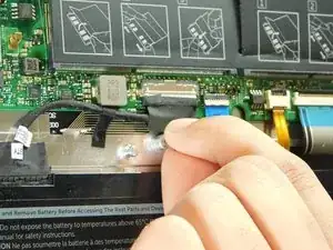 Отсоедините разъём подключения аккумулятора к системной плате руками или пинцетом.