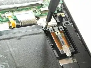 Открутите три винта, крепящих скобу в нижней части тачпада, с помощью отвёртки Phillips #0.