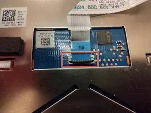 Поднимите защёлку, фиксирующую ленточный кабель, подключённый к тачпаду.