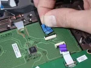Поднимите черную защёлку, где кабель клавиатуры подключается к материнской плате.