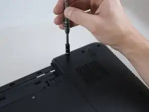 Используйте отвертку Phillips #0, чтобы выкрутить три винта длиной 4 мм с кнопок тачпада на обратной стороне крышки под ладонями.
