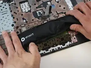Используйте iOpener, чтобы разогреть тачпад. Положите iOpener на тачпад, как показано на фото, на одну минуту.