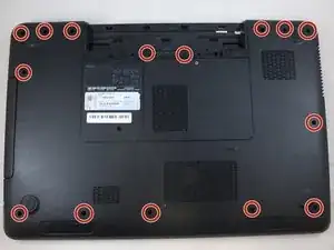 Используйте отвертку Phillips #0, чтобы выкрутить пятнадцать винтов длиной 5 мм, изображённых на фото.