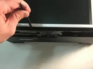 Осторожно откройте петли и снимите сборку ЖК-дисплея.
