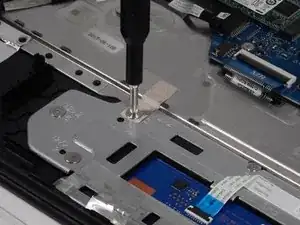 Используйте крестовую отвёртку #0, чтобы снять три винта 3,2 мм, которые крепят аккумулятор.