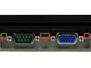 Снимите 8 винтов (M2-3 мм), показанных на изображении. Положите эти винты в контейнер с маркировкой, так как они отличаются от винтов рамки.