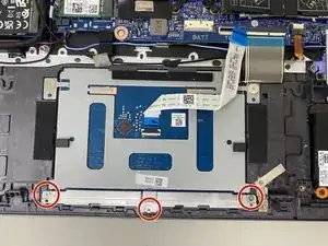 Открутите два винта с головкой 7 мм у основания тачпада крестовой отвёрткой Phillips #0.