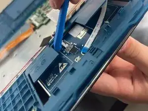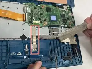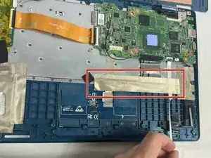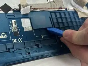 Используя инструмент для открытия, отсоедините тачпад от клеевой части основания.